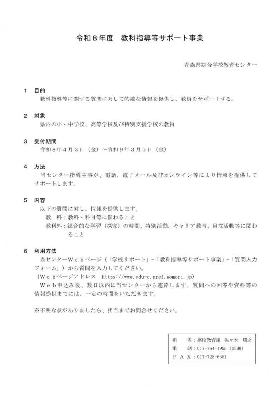 令和8年度教科指導等サポート事業について